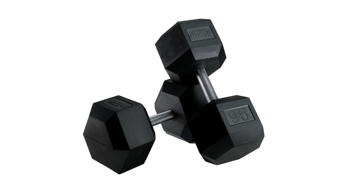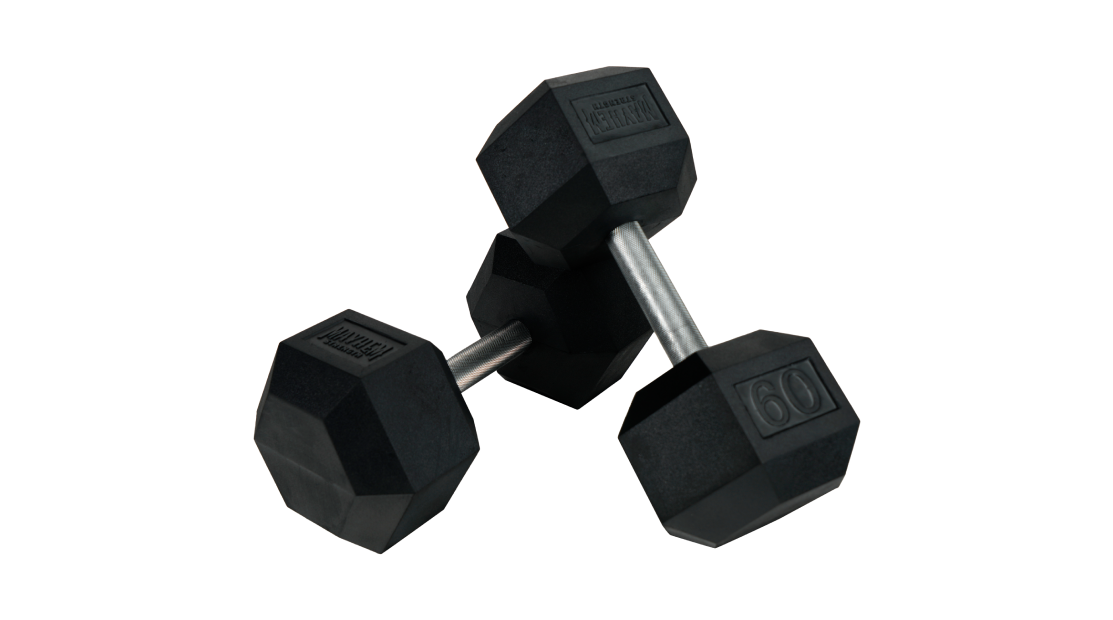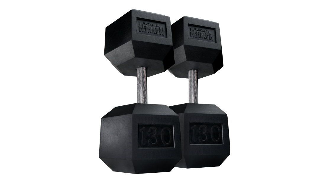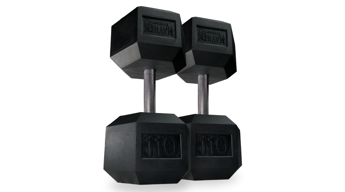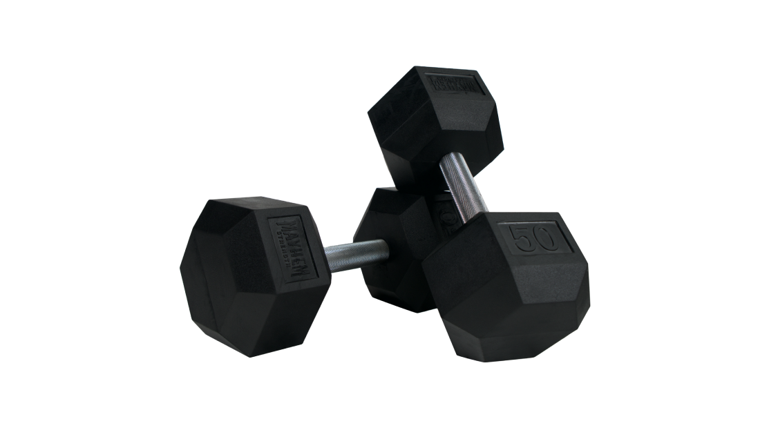 The Mayhem Strength Rubber Hex Dumbbell design is an excellent choice for those on a budget, without compromising on quality, performance, or durability. These dumbbells are built to last, featuring heavy-duty, rubber-encased heads that reduce noise and prevent damage to both the dumbbells and your flooring. The ergonomic chrome-finished handles are designed with a knurled competition texture, ensuring a comfortable and secure grip that can withstand frequent use and varying weather conditions.