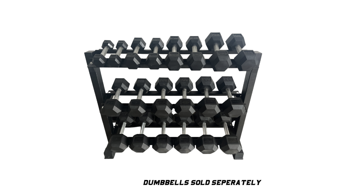 Additionally, the Three Tier Hex Dumbbell Rack is likely constructed from durable materials, making it a long-lasting investment for your home gym or fitness facility. Its compact design means it won't take up much space, making it suitable for various workout spaces.