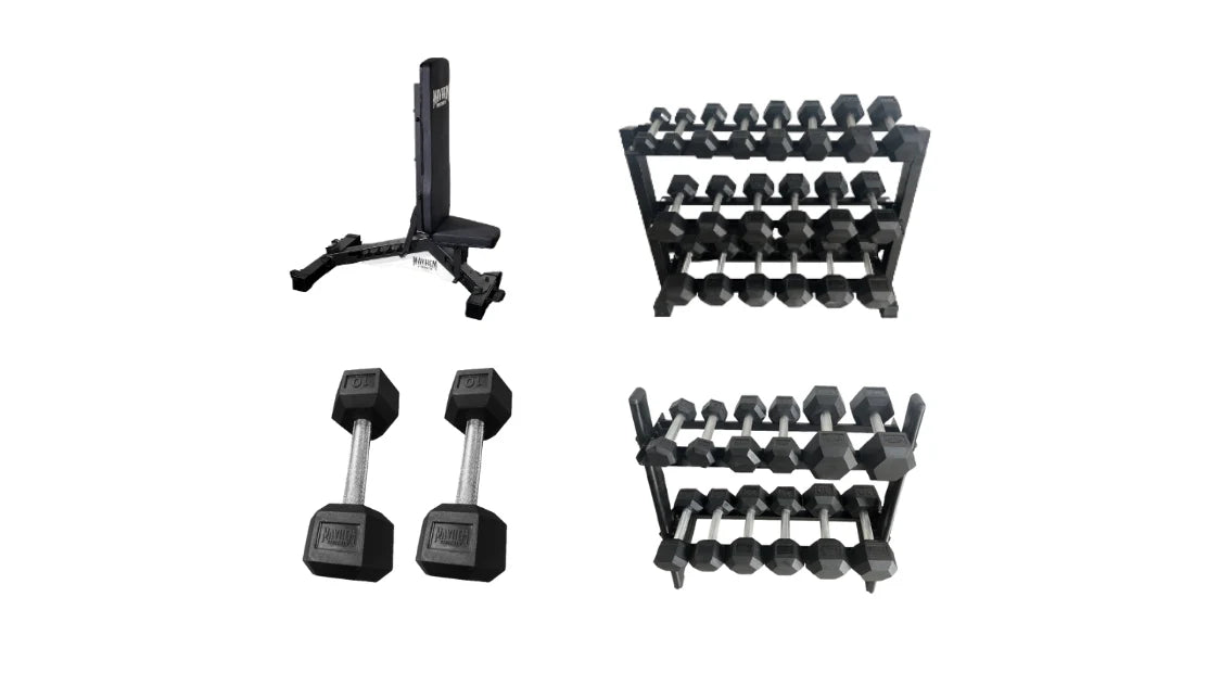 Three-Tier Hex Dumbbell Racks: Double the organizational efficiency! Our Elite Package includes two top-quality racks for your expanding dumbbell collection, ensuring a sleek and clutter-free gym space.