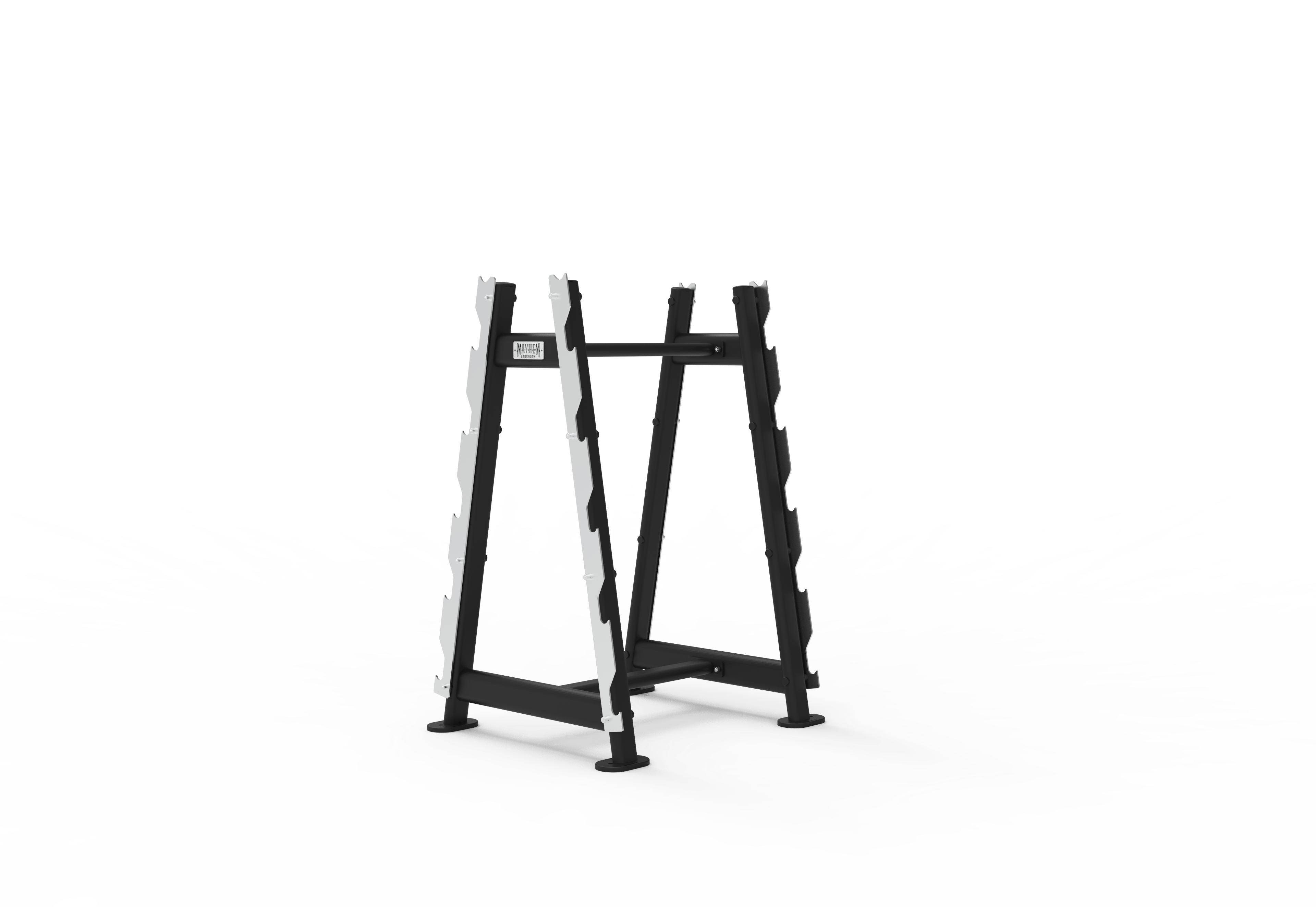 The Mayhem Strength Barbell Rack is a highly functional and robust storage solution designed for fitness enthusiasts and gym owners alike. This rack is specifically engineered to accommodate and organize up to 10 fixed straight and curl bars.